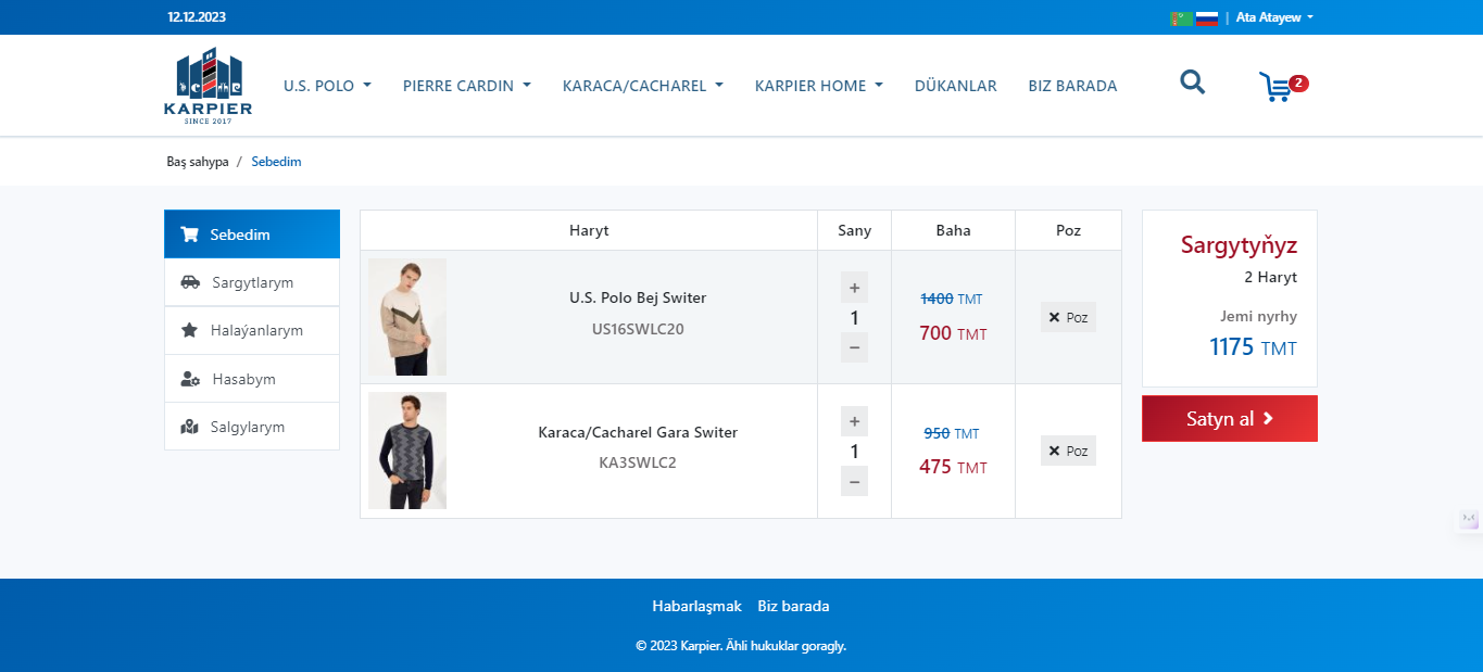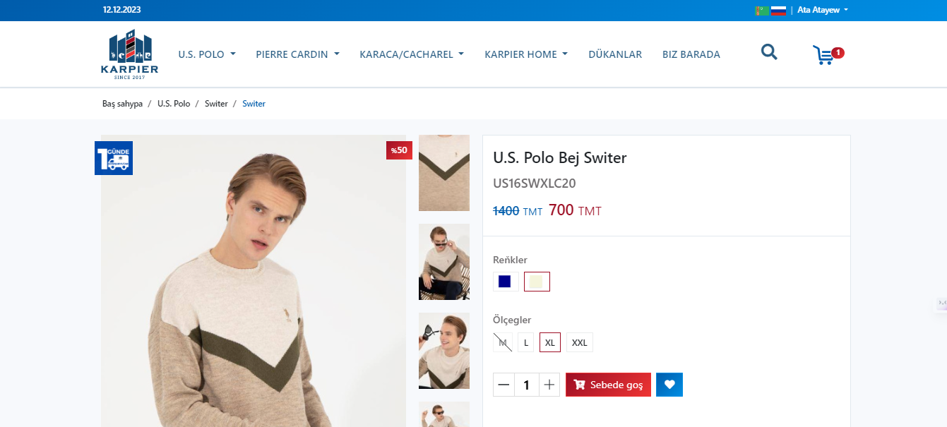 Karpier.com.tm saýtymyzdan halan harytlaryňyzy gerekli ölçegleriňizi saýlap sebede goş düwmä basyp sebede goşuň